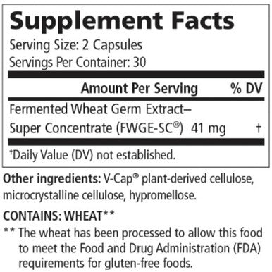 - Fermented Wheat Germ Extract Super Concentrate (FWGE-SC) 41 mg