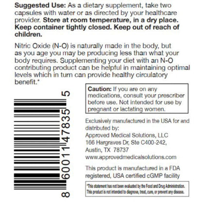 Approved Medical Solutions Nitric Oxide (N-O) supports heart, lung, and immune health. Formulated with low-oxalate arugula, it improves blood flow, reduces blood pressure, and enhances oxygen delivery. As a natural vasodilator, it supports cardiovascular and respiratory function while offering broad-spectrum antimicrobial protection.