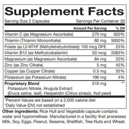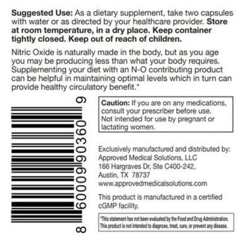 Approved Medical Solutions Nitric Oxide (N-O) is made with low-oxalate arugula and supports heart, lung, and immune health. It helps reduce heart workload, boost oxygen delivery, and lower the risk of cardiovascular events. As a natural vasodilator, it improves circulation, lowers blood pressure, and supports respiratory function. Also offers strong antimicrobial protection against bacteria, viruses, and fungi.