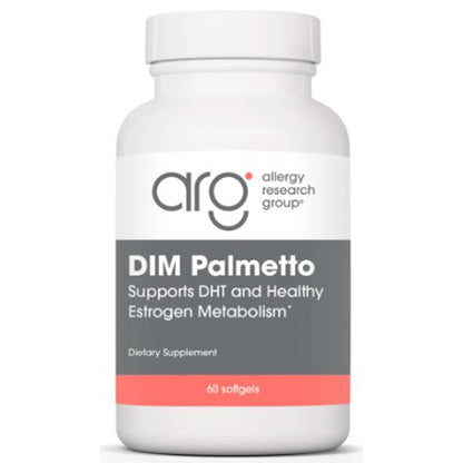 Allergy Research Group DIM Palmetto Prostate Formula 60sg is provide to regulate and promote a more efficient metabolism of estrogen and an optimal ratio of estrogen components important for male as well as female health.