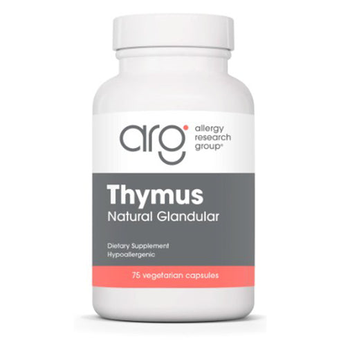 Allergy Research Group Thymus Natural Glandular is a dietary supplement for immune system support. The thymus is a part of the lymphatic system situated in the neck and its primary role is the production of T-cells for the immune system. T-cells support healing and illness prevention by attacking foreign substances within the body. The glandular tissue is taken from range fed, government inspected animals in Australia and New Zealand where the animal husbandry regulations are very strict. Tissues from certain animals may help stimulate proper functioning of similar human glands.