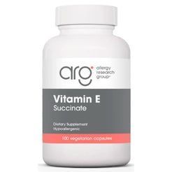 Allergy Research Group Vitamin E Succinate is a dietary supplement providing antioxidant support. Vitamin E is one of the best antioxidants available supporting many functions in the body. It provides support for cardiovascular health by helping prevent excessive blood clots; helps fight oxidation in the macula that affects vision as you age; and support brain function by preventing free radical damage to the cells allowing adequate oxygen flow to the brain. It also works to prevent free radical damage to cells in the rest of your body.