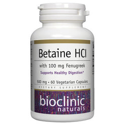 Bioclinic Naturals Betaine HCl supports normal digestion, healthy digestive tract, and the added fenugreek helps soothe and supports healthy stomach lining. It also helps maintain a pH that is supportive of healthy digestion, food safety, and a healthy microbiome in the small intestine.