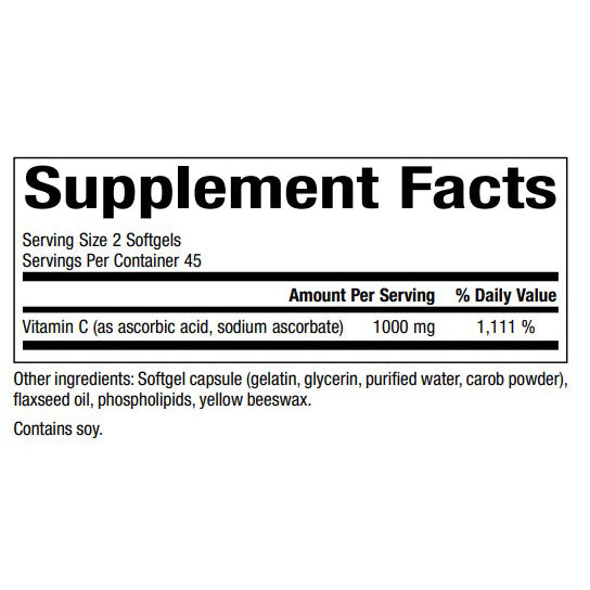 - Vitamin C (as ascorbic acid, sodium ascorbate) 1000 mg