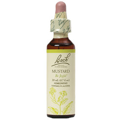 Bach Flower Remedies Mustard is a homeopathic formulation for relief of naturally occurring nervous tension. Mustard is used to aid in restoring cheerfulness and joy when sudden gloom sets in for no apparent reason. Recommended usage: 2 drops in water and sip at intervals or add to a 30ml mixing bottle containing water. Take 4 drops a minimum of 4 times a day or as directed by your healthcare practitioner.