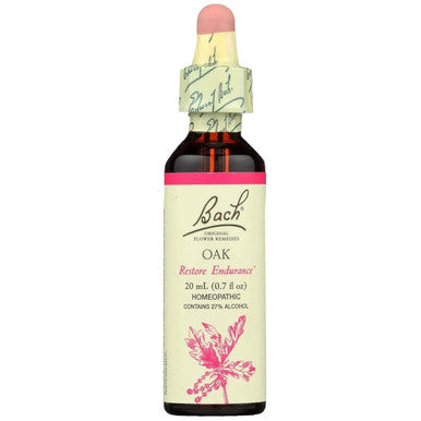 Bach Flower Remedies Oak is a homeopathic formulation for the relief of naturally occurring nervous tension. Oak is used for those who do not take breaks to do so instead of struggling on without resting. Recommended usage: 2 drops in water and sip at intervals or add to a 30ml mixing bottle containing water. Take 4 drops a minimum of 4 times a day or as directed by your healthcare practitioner.