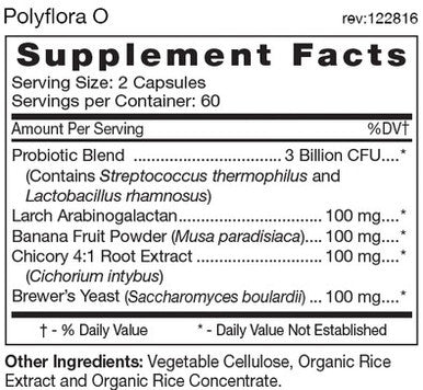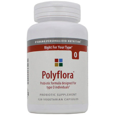 D'Adamo Polyflora Probiotic (Type O) is formulated to deliver blood type friendly bacteria (probiotics) and media (prebiotics) specifically for Type O to support an optimal intestinal microbial balance. Recommended usage: Take two (2) capsules two (2) times daily away from foods as a dietary supplement or as directed by your healthcare professional.