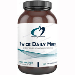 Designs for Health Twice Daily Multi is a dietary supplement providing optimal nutrient amounts that are not obtained easily in most diets. This formulation includes high quality ingredients such as vitamin E as high gamma mixed tocopherols, Blend of of isomer naturally occurring folates, and true amino acid chelate minerals.Recommended Use: Take 2 capsules per day with meals, or as directed by a healthcare professional.