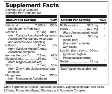 - Zinc (from Zinc Krebs/ Malate/ Ascorbate complex) 7.5 mg