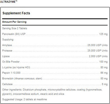 Douglas Laboratories Ultrazyme Facts:2 Tablets contain: