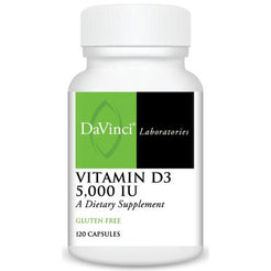 DaVinci Laboratories Vitamin D3 5000 IU 120 is a dietary supplement designed to support the body's absorption of calcium and phosphorus. These are essential for maintenance and development of healthy bones and teeth. Vitamin D is a fat soluble vitamin that supports the cardiovascular function, bone health, immune system modulation, calcium balance, and healthy cell function. Recommended usage: As a dietary supplement, take 1 capsule daily, or as directed by your healthcare practitioner.Related Articles