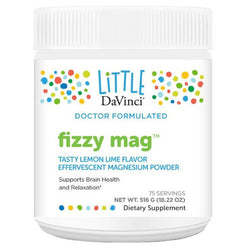 DaVinci Laboratories Fizzy Mag supports brain health, sleep quality, nerves, and muscle health in children. Magnesium is a mineral needed by every cell; it activates at least 350 different enzymes in the body and is crucial for many of the metabolic function in the body. Magnesium may support a healthy mood in young adults, and healthy sleep.