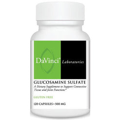 DaVinci Laboratories Glucosamine Sulfate is a dietary supplement for the support of connective tissue and joint functions. Glucosamine is an amino sugar formed in the body from glucose and are natural building blocks of the connective tissues. Glucosamine Sulfate can support the fluids in the joints as well as proper functioning of joints, spinal discs and connective tissues. Glucosamine also supports the protective mucus membranes in the gastrointestinal and respiratory tracts.