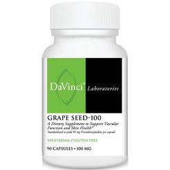 DaVinci Laboratories Grape Seed-100 supports the immune system, vascular functions and skin health. The proanthocyanidins (PCOs) yielded from grape seed extract are bioflavonoids with antioxidant properties and have been found to be more potent than vitamins E and C as antioxidants in free radical scavenging. Grape seed extract is able to bond to collagen fibers and supports flexibility in the skin, joints, arteries, capillaries, and other tissues.