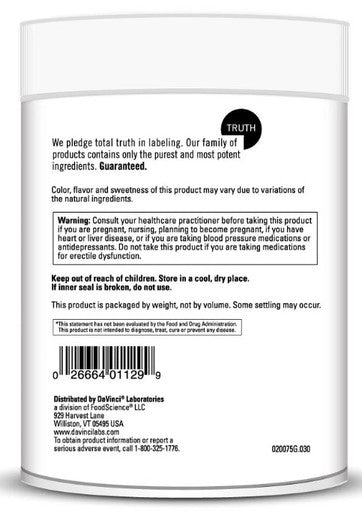 DaVinci Laboratories Maxi-BCAA Facts:1 scoop (12.5g) contain: