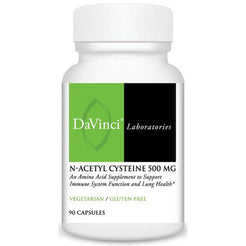 DaVinci Laboratories N-Acetyl Cysteine is an amino acid supplement for immune system function and lung health support. N-Acetyl Cysteine (NAC) has antioxidant properties and is necessary for glutathione production which helps the body cope with oxidative stress. NAC helps break down mucus in the respiratory tract, helps rebuild lung tissue, and supports immune cell activation.
