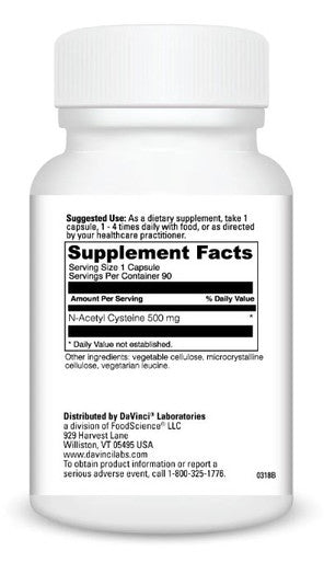 DaVinci Laboratories N-Acetyl Cysteine Facts:1 capsule contains: