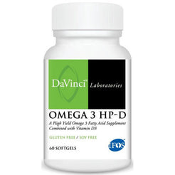 DaVinci Laboratories Omega 3 HP-D 60 is a high potency Omega 3 fatty acid supplement containing 450 mg EPA and 330 mg DHA combined with Vitamin D3. This omega-3 oil is from wild caught tuna, anchovies and sardines and the oil is molecularly distilled to ensure purity and stability. It comes in a lemon flavor and supports cardiovascular health, neurological performance, immune system function, joint comfort, and skin and hair health. Recommended usage: As a dietary supplement, take 2 softgels daily, or as directed by your healthcare practitioner.Related Articles