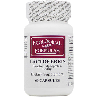 Ecological Formulas Lactoferrin is a dietary supplement for gastrointestinal health support. This purified derivative of whey protein possesses iron binding properties in human nutrition. Lactoferrin supports beneficial intestinal flora through naturally occurring microbial action. Recommended usage: Take one capsule twice daily‚ between meals‚ or as directed by a physician.Related Articles