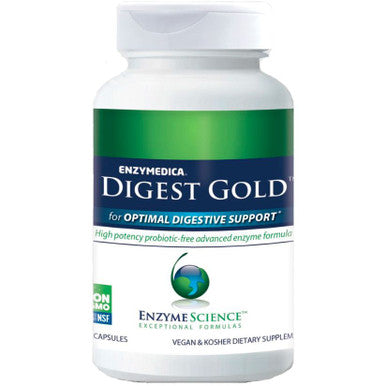 Enzyme Science Digest Gold 240 caps supports the break down of all components of a meal, digestive formula, nutrient absorption, and energy promotion. Vegan and Kosher product without probiotics.