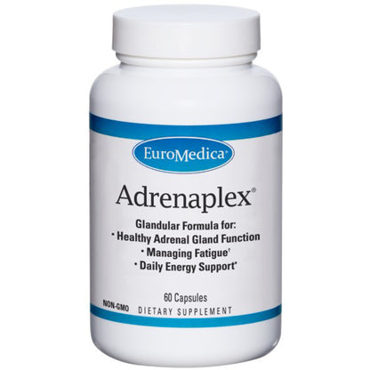 EuroMedica Adrenaplex is a dietary supplement designed to support a healthy adrenal gland function and manage fatigue. The adrenal glands are responsible for helping the body fight stress and fatigue by controlling the stress hormones like adrenaline and cortisol. This formulation provides nutrients that are necessary for maintaining and revitalizing a healthy adrenal gland function.