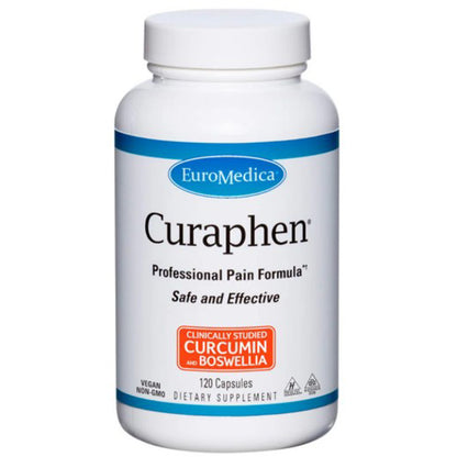 EuroMedica Curaphen is a supplement for pain relief support. Curaphen offers a super-absorption curcumin (BCM-95) that absorbs better than plain curcumin products. DLPA provides support for healthy enkephalin and endorphin activity while nattokinase support healthy circulation. Curaphen is for occasional muscle pain due to overuse or exercise.