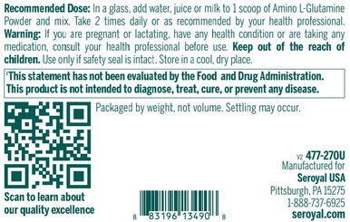 Recommended Use: In a glass, add water, juice or milk to 1 scoop of Amino L-Glutamine Powder and mix. Take 2 times daily or as directed by a healthcare professional.