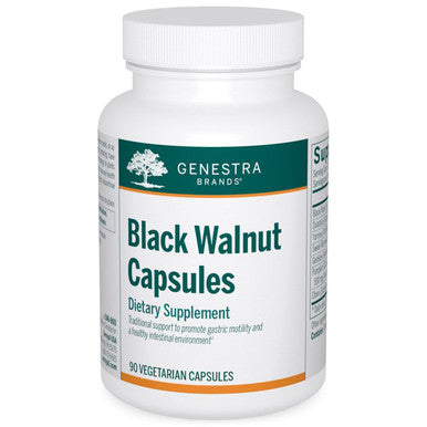 Genestra Black Walnut Capsules supports digestive health, bowel health, and promotes gastric motility. Helps with candidiasis, fungal and parasitic infestations, soothe intestinal tract, chronic overgrowth, constipation, indigestion, sinusitis, bleeding gums, gingivitis, throat, nose and ear infections.