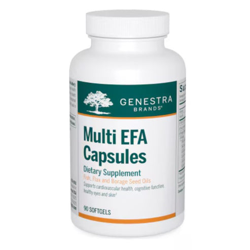 Genestra Multi EFA Capsules contains protein, fish oil, flax seed oil, borage seed oil, eicosapentaenoic acid, alpha linolenic acid, gamma linolenic acid, linolenic acid, oleic acid, natural mixed tocopherols and other ingredients to support and maintain cardiovascular, immune and endocrine functions and natural ability of the body to convert linoleic acid into gamma linoleic acid.