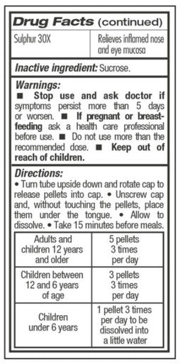 - Sulphur 30X - Relieves inflamed nose and eye mucosa