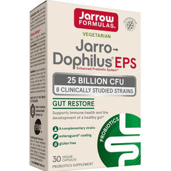 Jarrow Formulas Jarro-Dophilus EPS 25 billion supports intestinal health and immune system. B. longum BB536, L. rhamnosus R0011 and L. helveticus R0052 are well characterized and have been shown to interact via multiple mechanisms of action with the intestinal tract and the microbial ecosystem within it. These strains have been clinically shown to improve the properties of the intestinal microflora, promote intestinal health and support immune response. Formulated with Eight Complementary Strains of Probiotic Bacteria (25 Billion Per Capsule), and Coated with an Enteric Coating to survive stomach acid and deliver probiotics to the intestines.