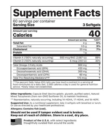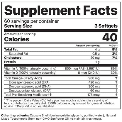Other Ingredients: Capsule shell (bovine gelatin, glycerin, purified water), Natural Mixed Tocopherols (from non-GMO Sunflower Oil, to maintain freshness). Contains Fish (Cod)