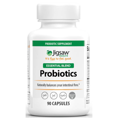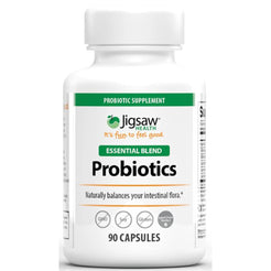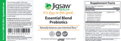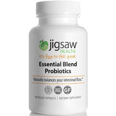 Jigsaw Health Essential Blend Probiotics Supports healthy digestive system function, restores intestinal flora after antibiotic use and supports the body's ability to absorb calcium, copper, iron, and magnesium. Also supports healthy immune system response, and the healthy digestion of dairy foods.