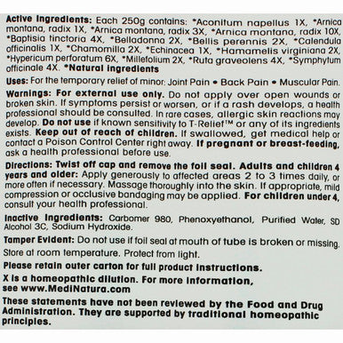 MediNatura T-Relief Pain Gel Each 57g contains:Active Ingredients: