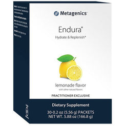 Metagenics  Endura Electrolyte Powder Lemonade is a dietary supplement for rehydration and energy support. Endura provides a blend of electrolyte minerals that are located in muscle cells as well as magnesium and is designed to support fluid absorption and deter dehydration. Magnesium is an essential mineral for cellular energy metabolism. The magnesium included has been formulated to minimize gastric discomfort. Carbohydrates are also offered as glucose polymers and fructose in a balanced ratio to support a delay in fatigue onset during strenuous activity as well as supporting rehydration. This formula is provided in a tasty lemonade flavor.