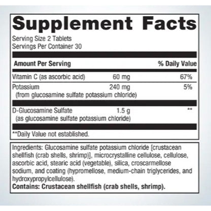- D-Glucosamine Sulfate (as glucosamine sulfate potassium chloride) 1.5 g