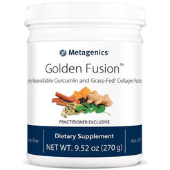 Metagenics Golden Fusion Highly bioavailable curcumine and grass-fed collagen peptides. Organic herbs turmeric, ginger, cinnamon, pepper, Indian cardamom, and moringa in an organic coconut milk powder base round out this innovative formula. Features CurQfen, a unique, patented, stable curcuminoid (from turmeric) and galactomannan (from fenugreek) compound designed for increased bioavailability. Curcumin, a major curcuminoid found in turmeric, may beneficially modulate signaling molecules that influence immune function. Also supports hair, skin and nail health. 30 servings per container.