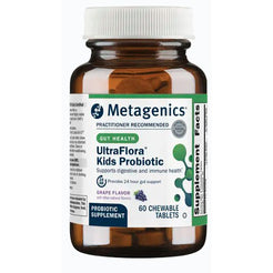 Metagenics UltraFlora Kids Probiotic (formerly Meta Kids Probiotic) Provides a proprietary blend of highly viable, pure strains of friendly bacteria shown to support immune health. Grape flavored chewable.