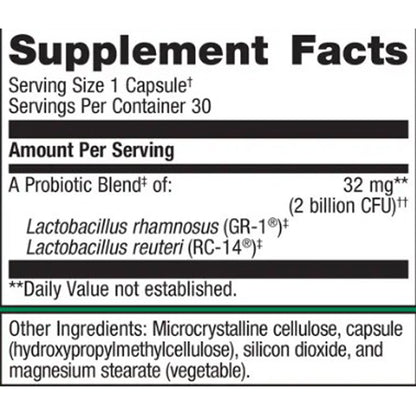 - A probiotic blend of: of: (2 billion CFU) 32 mg