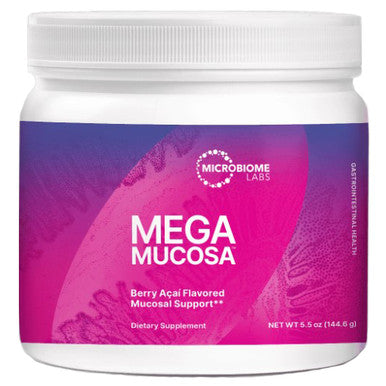 Microbiome Labs MegaMucosa supports a healthy mucosal barrier, immune system, microbial diversity, microbial composition in the gut, digestion, detoxification, and short chain fatty acid production.