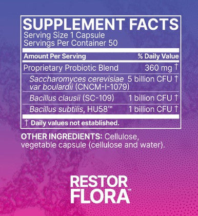 Microbiome Labs RestorFlora facts:Serving Size: 1 capsule