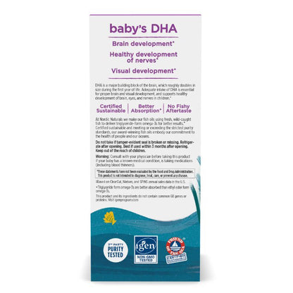 Nordic Naturals Baby's DHA (formerly DHA Infant) Supports healthy brain, eye, and nervous system function. DHA is essential for proper brain development in infants to support learning and language abilities. Formulated for the specific omega-3 nutritional needs of infants 5 to 35 lbs.