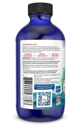 Nordic Naturals Children's DHA Liquid is specially formulated to support brain and visual development in children aged 3 and up. Made exclusively from Arctic cod liver oil, this product is a rich source of omega-3 DHA, which is crucial for the healthy development of the brain, eyes, and both the nervous and immune systems.