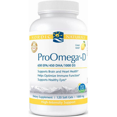 Nordic Naturals ProOmega-D (650 EPA/450 DHA/1000 D3) provides exceptionally high levels of the omega-3 essential fatty acids EPA and DHA, in addition to 1000 I.U. of vitamin D3, in one delicious serving. Vitamin D3 (or cholecalciferol) is the natural form of vitamin D produced by the body, and is better absorbed and utilized than other forms.