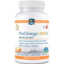 Nordic Naturals ProOmega 2000 Jr. Strawberry For children and adults. Supports the heart, brain, and immune health. For anyone wanting high-intensity omega-3s in a great-tasting, smaller soft gel that is easy to swallow or chew.