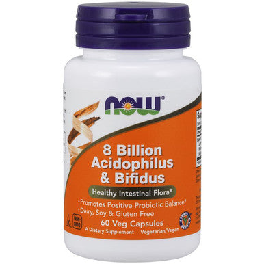 Now 8 billion Acidophilus & Bifidus promotes positive probiotic balance. Has a blend ot the two prominent types of resident intestinal bacteria. Regular intake of probiotics can aid in maintaining healthy intestinal flora.