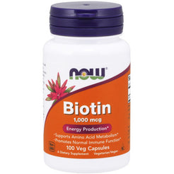 Now Biotin 1000 mcg supports immune function and amino acid metabolism. Biotin is a water-soluble vitamin necessary for normal growth and body function. Biotin functions as a key regulatory element in gluconeogenesis, fatty acid synthesis, and in the metabolism of some amino acids. Alongside its role in energy production, biotin enhances the synthesis of certain proteins. In addition, biotin promotes healthy immune system function and plays a critical role in skin health.Recommended Use: Take 1 capsule daily with a meal, or as directed by a healthcare professional. Store in a cool, dry place after opening.