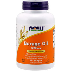 Now Borage Oil 1000mg is a nutritional oil consisting of 60% Polyunsaturated Fats and approximately twice the average content of Gamma Linolenic Acid (GLA) as Evening Primrose Oil. GLA is an essential fatty acid that the body is able to produce from dietary linoleic acid; however, it is efficiently utilized for body functions when supplied directly through dietary sources. Research has determined that Borage Oil does not have harmful levels of Pyrrolizidine Alkaloids (PAs). Borage Oil is expeller-pressed and hexane-free.