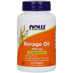 Now Borage Oil 1000mg is a nutritional oil consisting of 60% Polyunsaturated Fats and approximately twice the average content of Gamma Linolenic Acid (GLA) as Evening Primrose Oil. GLA is an essential fatty acid that the body is able to produce from dietary linoleic acid; however, it is efficiently utilized for body functions when supplied directly through dietary sources. Research has determined that Borage Oil does not have harmful levels of Pyrrolizidine Alkaloids (PAs). Borage Oil is expeller-pressed and hexane-free.Recommneded Use: Take 1 softgel 1 to 2 times daily, preferably with food, or as directed by a healthcare professional. Store in a cool, dry place after opening.