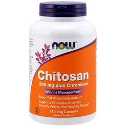 Now Chitosan 500mg Plus Chromium for weight management. A super fat absorbing formula and supports cholestoerol levels already in a normal range. Chitosan is polysaccharide derived from the shells of crustaceans can bind to fat and cholesterol in the digestive tract, helping to maintain cholesterol levels. Chitosan features LipoSan ULTRA, a high-density form of chitosan that, in laboratory testing, binds up to five times more fat than conventional chitosan. This formula helps support healthy body weight. Chromium, a mineral essential for normal glucose metabolism, has been included to complete this formula.Recommended Use: Take 3 capsules immediately before the 2 main meals of the day. Do not exceed 6 capsules per day. Take in conjunction with a sensible diet and exercise program. Take at least 4 hours before or after fat-soluble vitamins (A, D, E, K) or medications, or as directed by a healthcare professional. Store in a cool, dry place after opening.